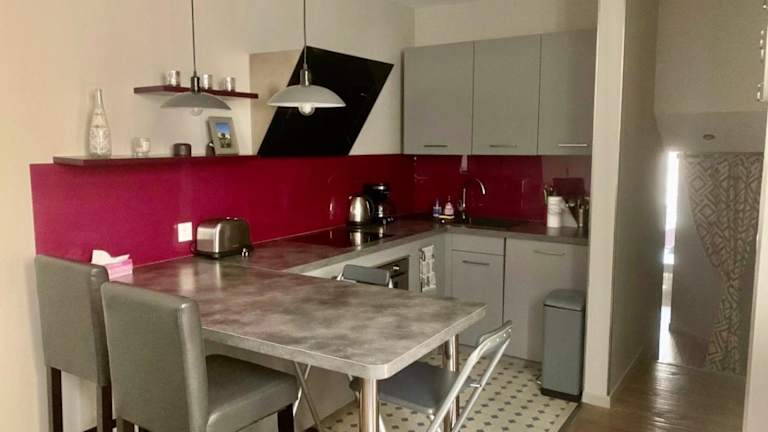 Die Unterkunft verfügt über eine voll ausgestattete Küche mit Kühlschrank und Kaffeemaschine, bietet jedoch keine spezifischen Informationen zu Verpflegungsmöglichkeiten.
