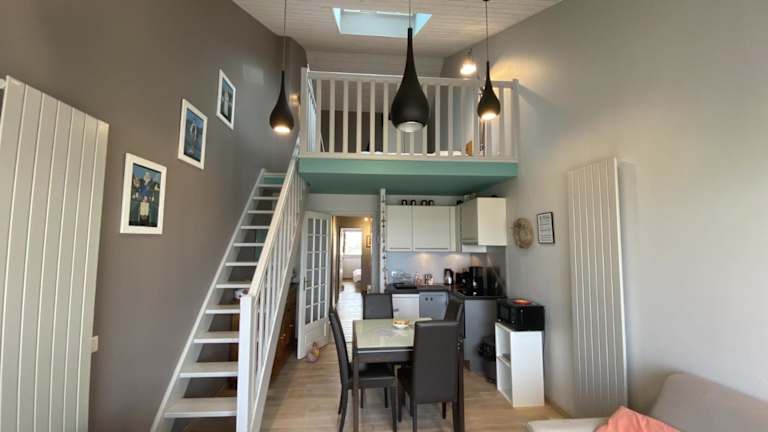 Die Unterkunft befindet sich in Fort-Mahon-Plage, nur 100 m vom Strand Plage de Fort Mahon entfernt. Weitere Sehenswürdigkeiten in der Nähe sind Maréis Sea Fishing Discovery Centre in 36 km Entfernung und der Golfplatz Belle Dune, der 1,8 km entfernt liegt. Der Bahnhof Rang du Fliers-Verton-Berck ist 16 km entfernt, und das Caudron Brothers Museum befindet sich in 13 km Entfernung. Zum Vogelpark des Marquenterre sind es 14 km.