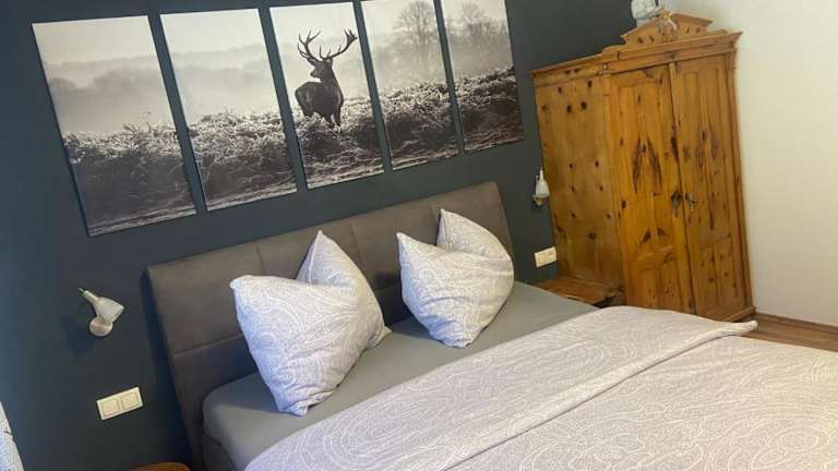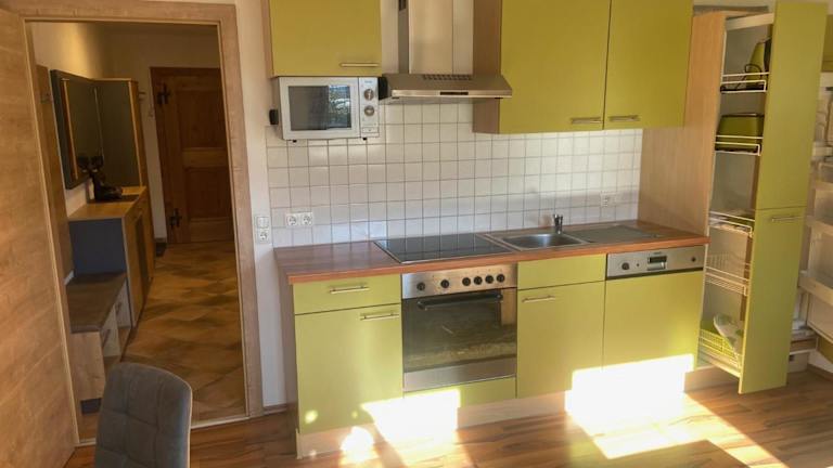 Die Ferienwohnung umfasst 1 Schlafzimmer, ein Wohnzimmer, ein Badezimmer mit Dusche sowie eine gut ausgestattete Küchenzeile mit Kühlschrank und Geschirrspüler. Zur Ausstattung gehört auch ein Flachbild-TV. Zudem sind Handtücher und Bettwäsche vorhanden. Ein Balkon mit Bergblick ist ebenfalls vorhanden.