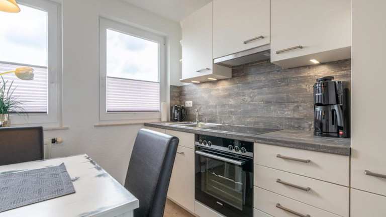 Die Ferienwohnung umfasst zwei Schlafzimmer, eine Küche mit Kühlschrank und Geschirrspüler sowie ein Badezimmer mit Dusche, Haartrockner und Waschmaschine. Zur Unterhaltung steht ein Fernseher zur Verfügung. Es handelt sich um eine Nichtraucherunterkunft, sowohl in den privaten als auch in den öffentlichen Bereichen.