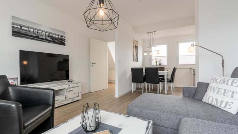 Die Appartementanlage befindet sich in Sankt Peter-Ording, 600 m vom Strand entfernt. Wichtige Sehenswürdigkeiten in der Umgebung sind die Messe Husum und das NordseeCongressCentrum, 49 km entfernt, sowie der Westerhever Leuchtturm, 15 km entfernt. Multimar Wattforum ist 24 km entfernt, und Phänomania Büsum liegt 42 km von der Unterkunft entfernt.