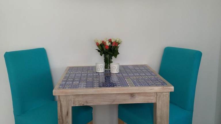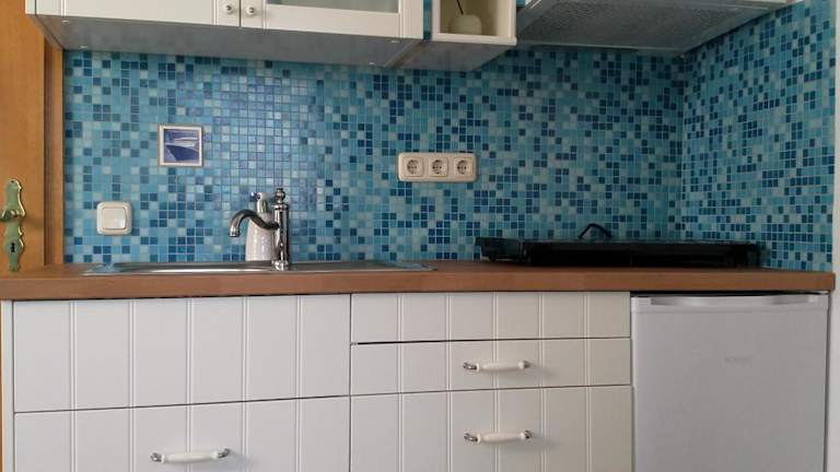 Die Appartements sind mit einer voll ausgestatteten Küche ausgestattet, die einen Kühlschrank, eine Herdplatte, einen Toaster, eine Kaffeemaschine und einen Wasserkocher beinhaltet.