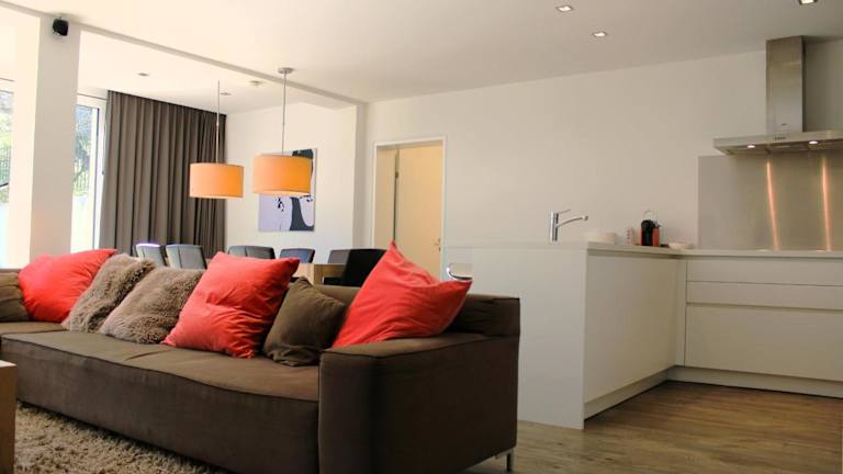 Die Ferienwohnung verfügt über 3 Schlafzimmer, einen TV mit Kabelkanälen und eine voll ausgestattete Küche, die mit einem Kühlschrank, Geschirrspüler, Waschmaschine, Ofen und Herdplatte ausgestattet ist. Handtücher und Bettwäsche werden ebenfalls bereitgestellt.