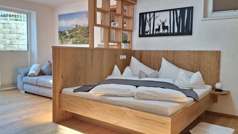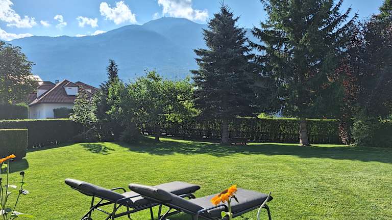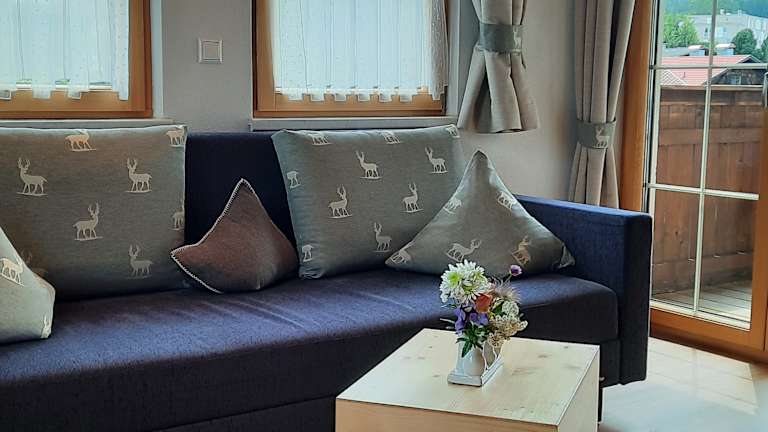 Unsere Appartements verfügen über * zwei getrennte Schlafzimmer in Holz mit hochwertigen Matratzen, * gemütliche, komplett ausgestattete Wohnküche (Herd, Backrohr, Mikro, Geschirrspülmaschine, Kühlschrank mit Gefrierfach, Kochgeschirr, Essgeschirr, Gläser, Besteck, Kaffeemaschine, Wasserkocher, Nespresso, Radio, Tischwäsche) mit Sitzecke und Blick in den Garten, * typisches Wohnzimmer im Tiroler Stil in Holz mit TV und Tür auf die Terrasse, Blick auf die umliegenden Berge * ein oder zwei Bäder (mit Dusch- und Handtücher, Fön, Kosmetikspiegel, Seife, Kosmetiktücher), * separates WC * praktische Garderobe. Genießen Sie das Frühstück auf Ihrer privaten Sonnenterrasse an der frischen Luft, mit wunderbarer Aussicht auf die schöne Tiroler Bergwelt.