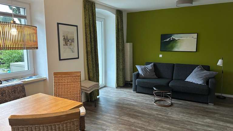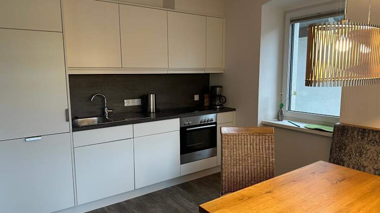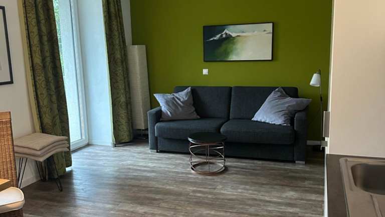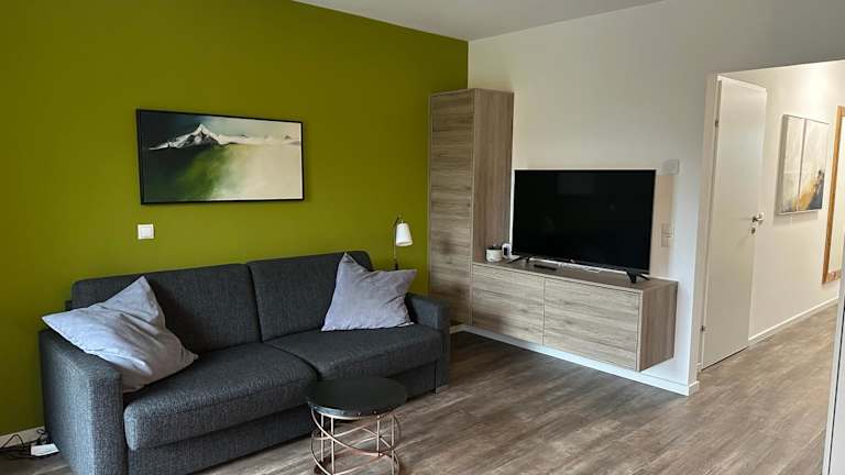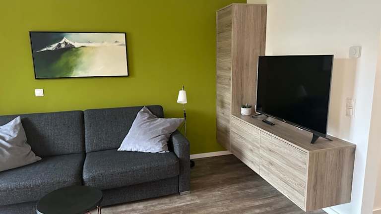 Die Appartements bieten einen Balkon mit Bergblick, einen Sitzbereich sowie eine komplett ausgestattete Küche mit Kühlschrank, Geschirrspüler, Ofen, Herdplatte, Kaffeemaschine und Wasserkocher. Jedes Appartement ist zudem mit einem eigenen Badezimmer ausgestattet, das eine Dusche und einen Haartrockner beinhaltet.