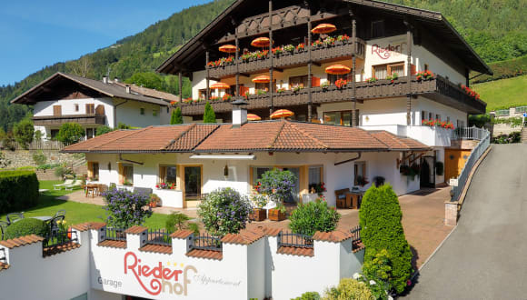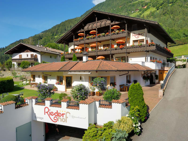 Appartement Riederhof - wo Gäste Freunde werden Ferienwohnungen in Passeiertal bei Meran Der Riederhof wurde im Jahr 1980, als eines der ersten großen Häuser mit vielen Ferienwohnungen, im Passeiertal nahe Meran eröffnet. Obwohl damals Ferienwohnungen in Südtirol, speziell Ferienwohnungen in Meran eine Ausnahme waren, erfreute sich der Riederhof stets vieler netter Gäste und nicht wenige davon sind uns bis heute treu geblieben. Im Jahr 2001 wurde das Appartement Riederhof umgebaut und um eine umfangreiche Tiefgarage, sowie eine große Liegewiese erweitert, mit direktem Zugang zum Hallenbad. Auch unsere großzügig gestalteten Ferienwohnungen bekamen immer wieder einen neuen Schliff. So wurden von 2016 bis 2019 alle Wohnungen mit neuen Parkett-Fußböden ausgestattet, in den unteren Stockwerken neu möbliert und die oberen Stockwerke bekamen neue moderne Badezimmer mit Duschen. Alle unsere Wohnungen verfügen über einen Balkon oder Terrasse, Schlafzimmer, Küche und Badezimmer.