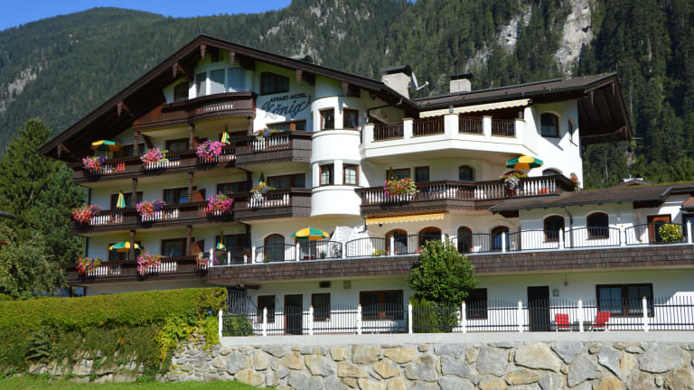 Im Apparthotel König in absoluter Toplage des Ortes, nur 300m vom Zentrum von Mayrhofen, den Bergbahnen, dem Supermarkt sowie dem Erlebnisbad entfernt, wohnen Sie ruhig aber trotzdem zentral.