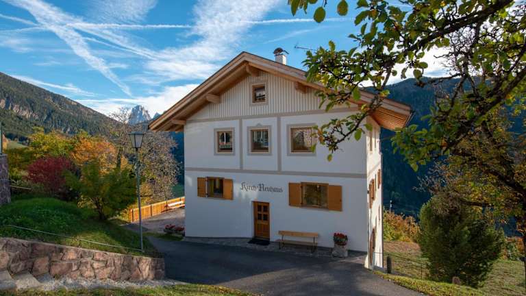 Das Appartment Kircherhof befindet sich in San Pietro, nur 5 Fahrminuten von Lajen entfernt. Die Lage ist ideal für Naturliebhaber, die die Ruhe der Umgebung genießen möchten. Das Skigebiet Dolomiti Superski und St. Ulrich in Gröden sind nur 7 km entfernt. Der Naturpark Schlern ist mit dem Auto in 40 Minuten erreichbar.