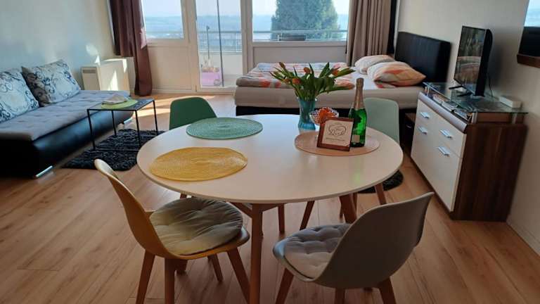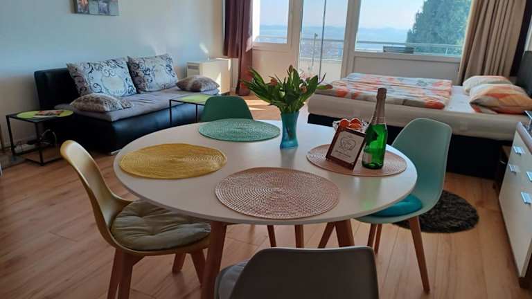 Appartment Panoramablick ist eine Ferienwohnung, die kostenloses WLAN und eine wunderschöne Aussicht auf den See bietet. Die Unterkunft bietet zudem einen Garten mit Gartenmöbeln und einen Innenpool. Sie ist eine Nichtraucherunterkunft, in der keine Feiern oder Junggesellenabschiede erlaubt sind.
