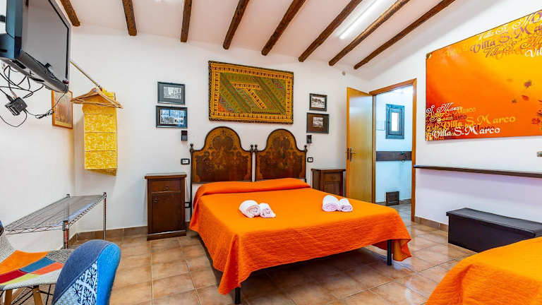 Die rustikalen Zimmer im B&B Villa San Marco sind klimatisiert und bieten den Gästen einen komfortablen Rückzugsort nach einem ereignisreichen Tag. Jedes Zimmer ist individuell gestaltet und verfügt über kostenfreies WLAN. Hier können die Gäste sich entspannen und den Charme der Unterkunft genießen.