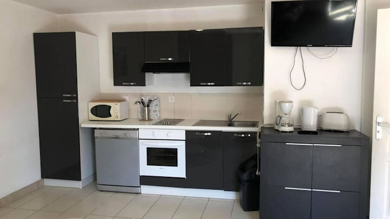 Das Appt familial avec terrasse et parking bietet eine Ferienwohnung mit einem Schlafzimmer, die über eine Terrasse, Tischtennismöglichkeiten sowie kostenloses WLAN und einen kostenlosen Privatparkplatz verfügt. Die Unterkunft ist für Familien geeignet und gestattet keinen Zugang für Feiern wie Junggesellenabschiede. Die Mindestalter für den Check-in beträgt 18 Jahre.