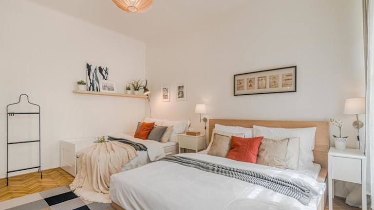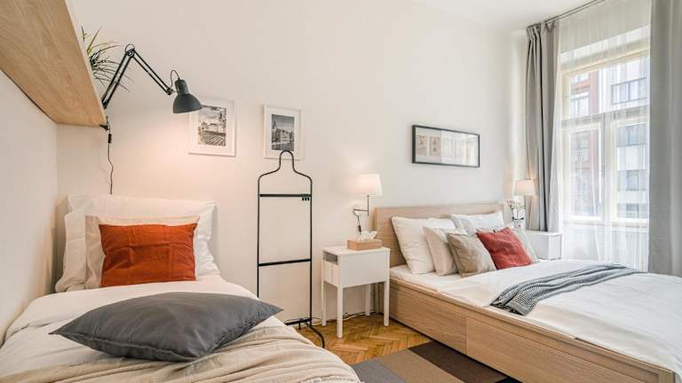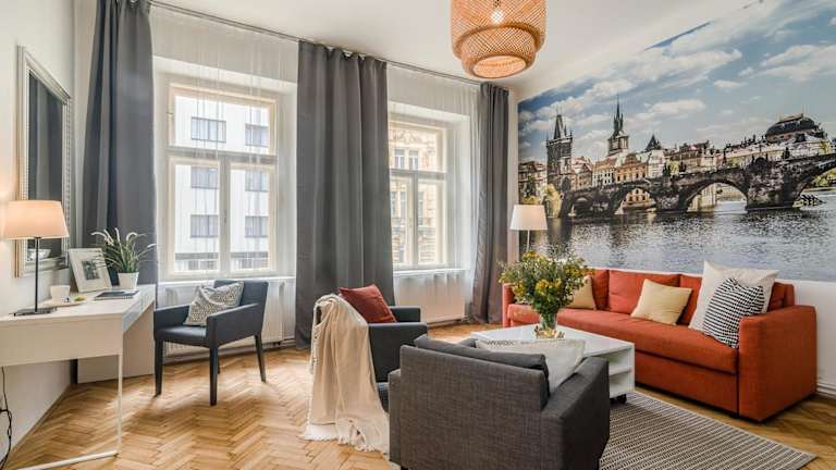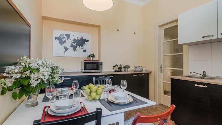 Die Ferienwohnung APT in center Prague by Michal&Friends bietet kostenlose WLAN-Nutzung und eine ruhige Lage im Herzen von Prag. Es handelt sich um eine Nichtraucherunterkunft, die für die Einhaltung von Sicherheits- und Hygienemaßnahmen sorgt. Ein privater Check-in/-out wird ermöglicht, und die Unterkunft legt Wert auf eine kontaktlose An- und Abreise.