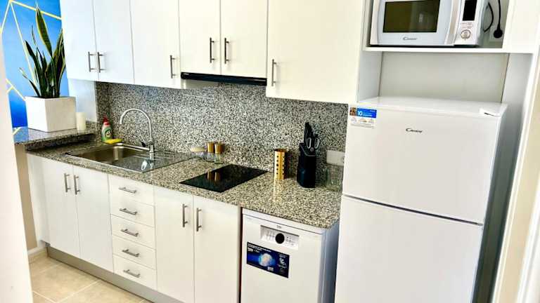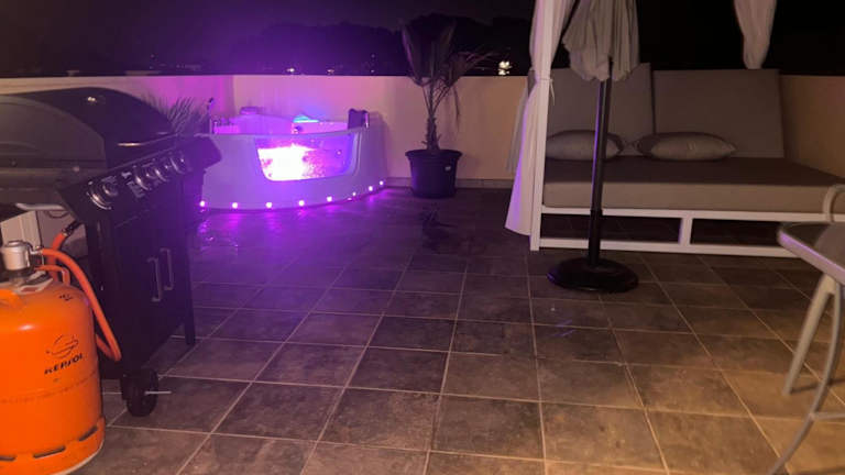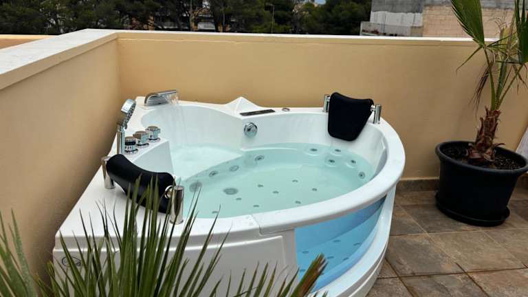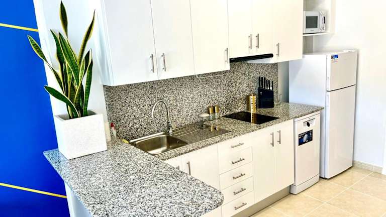Die Ferienwohnung ist klimatisiert und umfasst 2 Schlafzimmer, ein Wohnzimmer sowie eine voll ausgestattete Küche, die mit einem Kühlschrank und einer Kaffeemaschine ausgestattet ist. Des Weiteren gibt es ein Badezimmer mit Dusche und Whirlpool. Handtücher und Bettwäsche werden bereitgestellt.