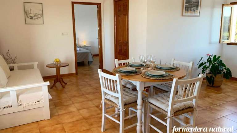 Apto Mar de Es Caló, a metros de la playa - Formentera Natural ist eine Unterkunft, die einen Balkon mit Meerblick und Zugang zu einer Terrasse bietet. Die Ferienwohnung ist klimatisiert und bietet sowohl kostenlosen WLAN-Zugang als auch kostenlose Parkmöglichkeiten.