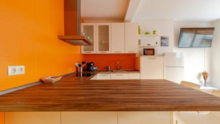 Die Ferienwohnung verfügt über 3 Schlafzimmer, eine voll ausgestattete Küche mit Kühlschrank und Geschirrspüler sowie 2 Badezimmer, die mit einer Dusche, Haartrockner und Waschmaschine ausgestattet sind. Handtücher und Bettwäsche werden bereitgestellt.