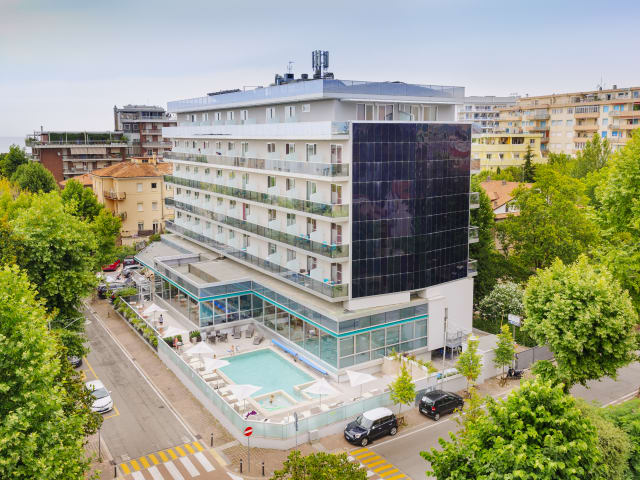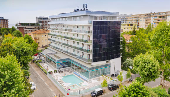 Herzlich Willkommen im Aqua Hotel! Dieses raffinierte und zeitgenössische Projekt wurde im Juni 2009 eröffnet. Es ist die minimalistische Neuinterpretation eines historischen Hotels in Rimini. Das Hotel liegt im exklusiven und ruhigen Wohnviertel von Marina Centro und nimmt einen privilegierten Platz der Stadt ein. Das Aqua Hotel ist ein besonderer Ort, um einen erstklassigen Aufenthalt in Rimini zu verbringen; es ist nur wenige Meter von der Strandpromenade und vom Stadtzentrum entfernt, es ist hervorragend mit dem Messegelände in Rimini verbunden, mit dem Kongresszentrum in Rimini und mit dem Bahnhof in Rimini.