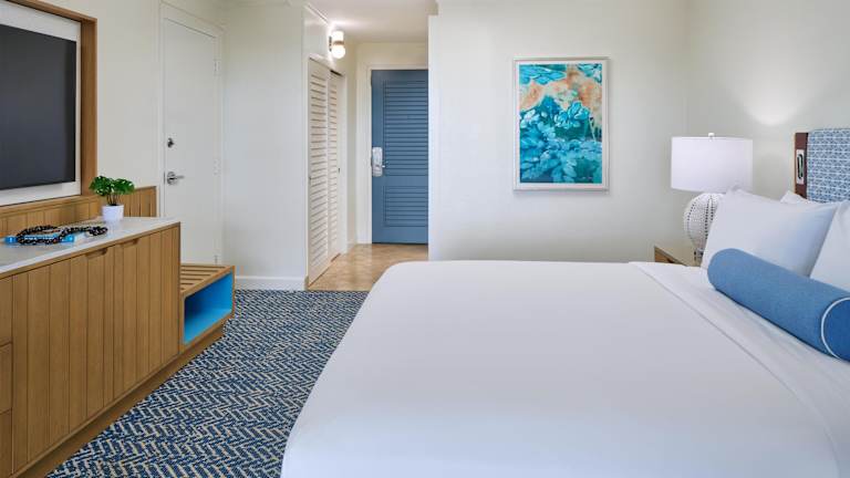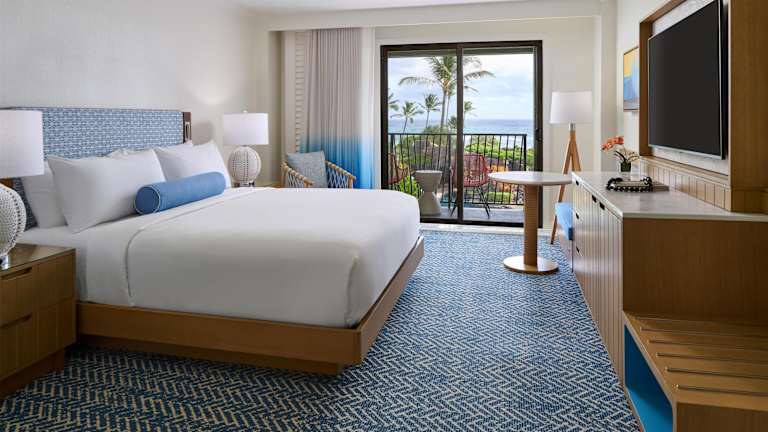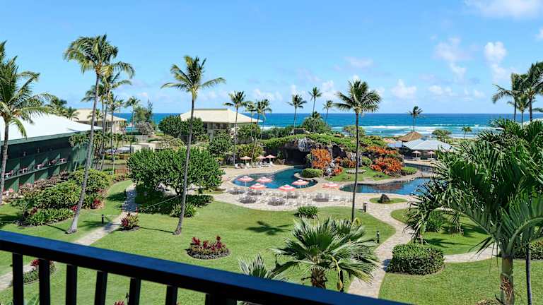 Die Zimmer im Kauai Beach Resort & Spa sind komfortabel eingerichtet und verfügen über einen eigenen Balkon, einen kompakten Kühlschrank, Kabel-TV und eine iPod-Dockingstation. Jedes Zimmer bietet zudem ein gefliestes Marmorbad und einen separaten Sitzbereich.
