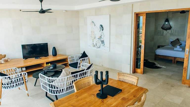 Die Unterkünfte im Aqua Nusa - Luxury Lembongan Villas sind klimatisiert und bieten ein eigenes Badezimmer mit Dusche und kostenlosen Toilettenartikeln. Alle Zimmer verfügen über einen separaten Wohn- und Essbereich sowie eine gut ausgestattete Küche, die es den Gästen ermöglicht, selbst zu kochen.