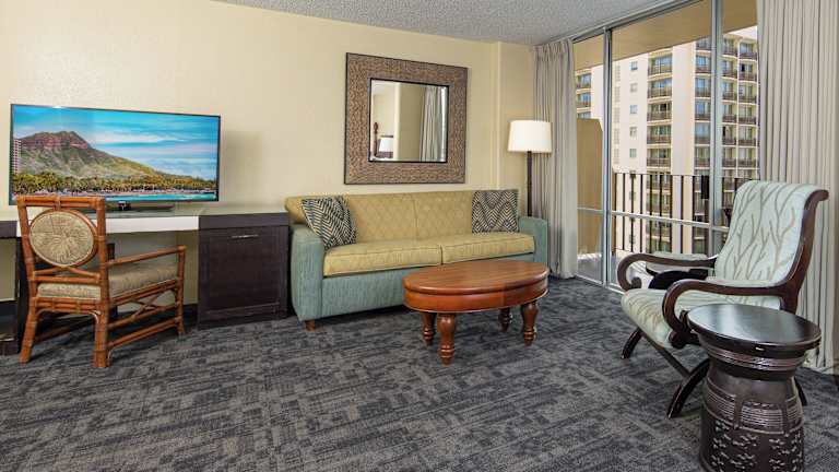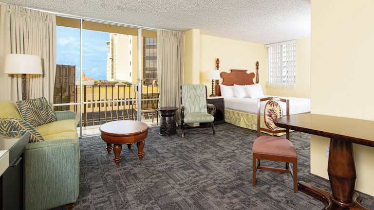 Die Ohia Waikiki Studio Suites bieten komfortable klimatisierte Zimmer mit einer Vielzahl von Annehmlichkeiten. Jedes Zimmer verfügt über einen Balkon, eine voll ausgestattete Küche mit Kaffeemaschine, Mikrowelle (auf Anfrage), Geschirr, Herd mit Backofen, Kühlschrank und Toaster. Zur weiteren Ausstattung gehören ein Flachbild-TV, ein Bügeleisen, ein täglicher Reinigungsservice, ein Radiowecker und ein eigenes Bad mit Dusche und Haartrockner.