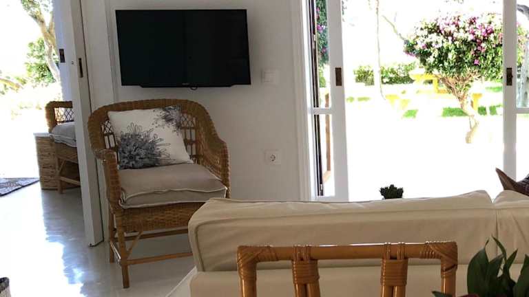 Das Aqua Seafront Beach House With Garden in Glyfada ist ein charmantes Strandhaus mit einem schönen Garten und einer Terrasse. Es befindet sich nur wenige Schritte vom Strand Glyfada entfernt und bietet einen idealen Ausgangspunkt, um die schöne Umgebung zu erkunden. Das klimatisierte Ferienhaus verfügt über ein Schlafzimmer, ein gemütliches Wohnzimmer und eine voll ausgestattete Küche. Kostenlose Parkplätze und WLAN stehen zur Verfügung. In der Nähe befinden sich auch Sehenswürdigkeiten wie die Kirche Panagia Vlahernon und die Universität Ionio. Der internationale Flughafen Korfu ist nur 14 km entfernt.