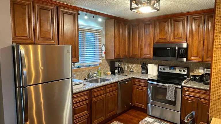 Die Ferienwohnung ist klimatisiert und umfasst 3 separate Schlafzimmer, eine komplett ausgestattete Küche mit Kühlschrank und Geschirrspüler sowie 3 Badezimmer. Handtücher und Bettwäsche werden bereitgestellt.