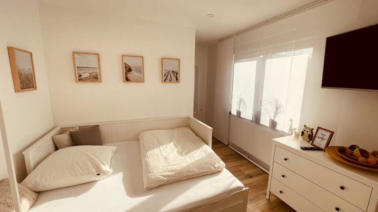 Die Ferienwohnung ist mit einer voll ausgestatteten Küche ausgestattet, die über einen Kühlschrank und eine Kaffeemaschine verfügt. Essmöglichkeiten sind in der Unterkunft gegeben.