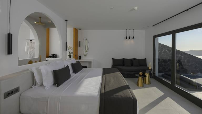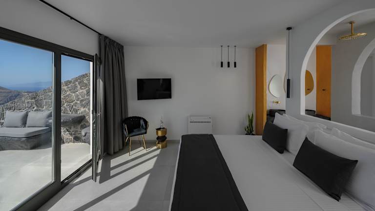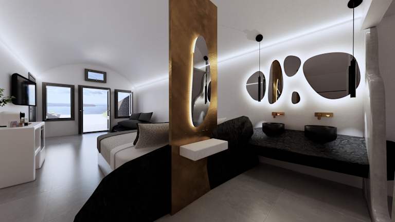 Die Unterkunft Arany Terra liegt in Imerovigli, weniger als 2,6 km vom Archäologischen Museum Thera und 12 km vom Hafen Santorin entfernt. In der näheren Umgebung befinden sich bedeutende Sehenswürdigkeiten wie Alt-Thera (ca. 13 km) und die Archäologische Stätte Akrotiri (ca. 16 km). Die Gegend bietet Möglichkeiten zum Wandern und Fahrradfahren, und Museum of Prehistoric Thera ist etwa 3,2 km entfernt. Der Flughafen Santorin ist 9 km entfernt und ein Flughafentransfer kann gegen Gebühr organisiert werden.