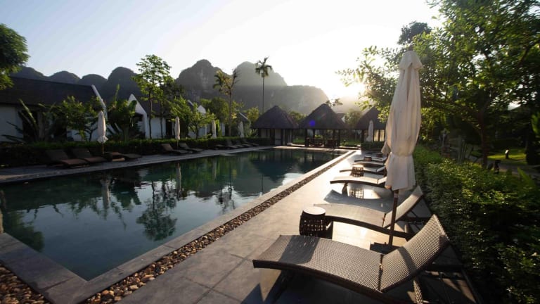 Das Aravinda Resort Ninh Binh in Ninh Binh ist der ideale Ort für einen erholsamen Aufenthalt. Mit kostenfreien Fahrrädern, einem Außenpool und einem schönen Garten bietet das Resort seinen Gästen eine angenehme Atmosphäre. Die Zimmer sind komfortabel eingerichtet und verfügen über ein eigenes Bad und kostenfreies WLAN. Genießen Sie ein köstliches Frühstück und entspannen Sie sich bei einem Getränk an der Bar. Die Lage des Resorts ermöglicht es Ihnen, die umliegende Natur zu erkunden und Aktivitäten wie Wandern und Radfahren zu unternehmen.