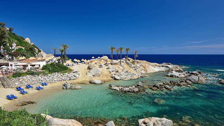 Das Arbatax Park Resort - Dune befindet sich auf einer privaten Halbinsel, umgeben von unberührten Buchten. Der Sandstrand von Orri liegt in der Nähe und das Zentrum von Tortoli ist nur etwa 3 km entfernt. Die Lage bietet einen atemberaubenden Blick auf das Meer und ist ein perfekter Ausgangspunkt für Erkundungen in der Natur.