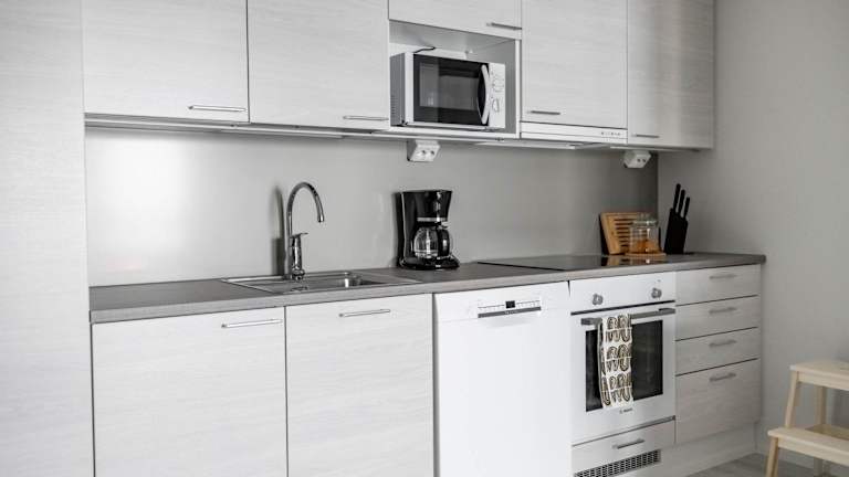 Die Ferienwohnung verfügt über ein Schlafzimmer, ein Wohnzimmer, eine voll ausgestattete Küche mit Kühlschrank und Kaffeemaschine sowie ein Badezimmer mit Bidet und Dusche. Handtücher und Bettwäsche werden zur Verfügung gestellt. Schallisolierte Zimmer sorgen für angenehme Ruhe während des Aufenthalts.