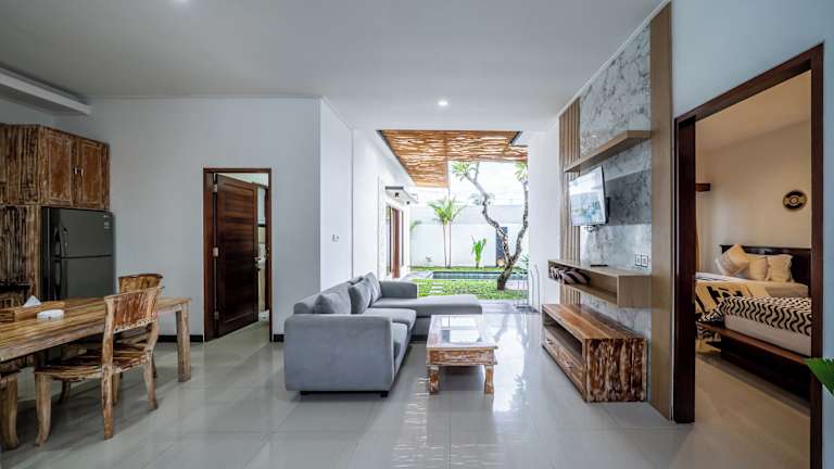 Die The Dewi Villa Canggu verfügt über komfortable und klimatisierte Zimmer, die alle über eine Terrasse, einen Sitz- und Essbereich sowie eine Küchenzeile mit Geschirrspüler und Mikrowelle verfügen. Ein Kühlschrank, ein Kochfeld und ein Wasserkocher ergänzen die Ausstattung. Jedes Zimmer verfügt über ein eigenes Bad mit Bademänteln und Hausschuhen sowie Handtüchern und Bettwäsche.