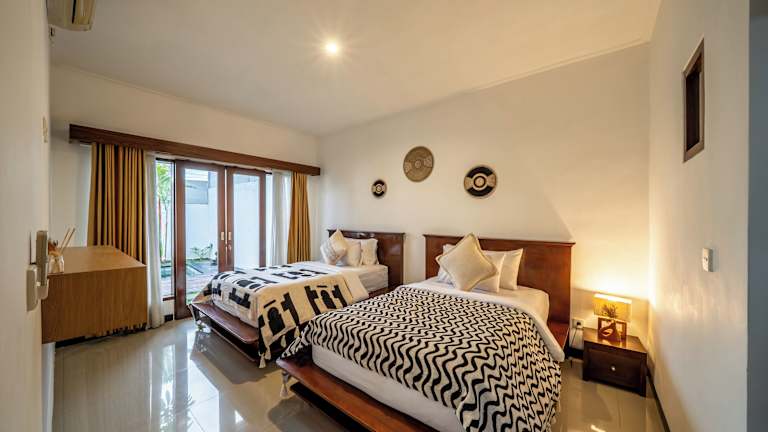 Die The Dewi Villa Canggu in Canggu ist der perfekte Ort für Paare, die einen entspannten und stilvollen Urlaub verbringen möchten. Mit einem Außenpool, Grillmöglichkeiten und komfortablen Zimmern bietet das Hotel alles, was Sie für einen erholsamen Aufenthalt benötigen. Genießen Sie die ruhige Lage und die Nähe zu den Stränden von Echo Beach und Batu Bolong. Das Restaurant des Hotels verwöhnt Sie auf Anfrage mit einem Lieferservice für Lebensmittel und Lunchpaketen.