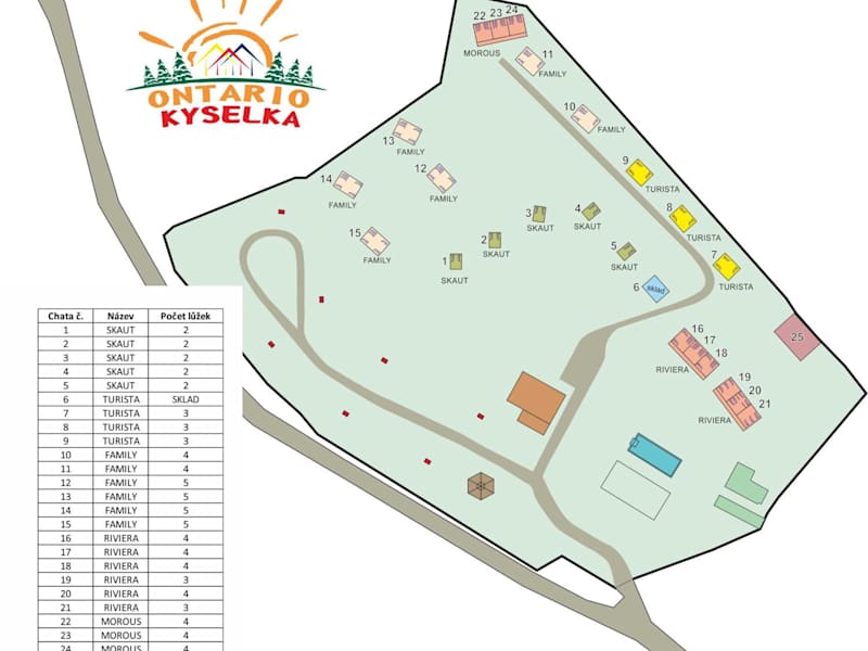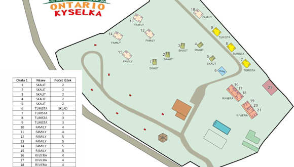 Das Areál Ontario Kyselka bietet verschiedene Unterkunftsmöglichkeiten, darunter Campingplätze und möblierte Unterkünfte. Die Einrichtungen umfassen ein Restaurant, in dem Sie lokale Spezialitäten genießen können, sowie eine Gemeinschaftsküche, in der Sie Ihre eigenen Mahlzeiten zubereiten können. Eine Bar und eine Gemeinschaftslounge stehen ebenfalls zur Verfügung, um sich zu entspannen und Kontakte zu knüpfen. Darüber hinaus können die Gäste den saisonalen Außenpool und den Grillplatz nutzen. WLAN ist in der gesamten Unterkunft kostenlos verfügbar.