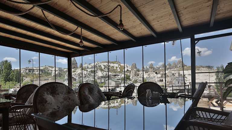Die Zimmer im Aren Cave Hotel sind klimatisiert und verfügen über Annehmlichkeiten wie Heizung, einen Wasserkocher und einen Fernseher. Die schallisolierten Zimmer bieten den Gästen eine angenehme und ruhige Atmosphäre. Einige Zimmer verfügen über einen gemütlichen Sitzbereich, in dem Sie sich entspannen können. Traditionelle Details wie Kelims und Keramikfliesen tragen zum authentischen Charme der Zimmer bei.