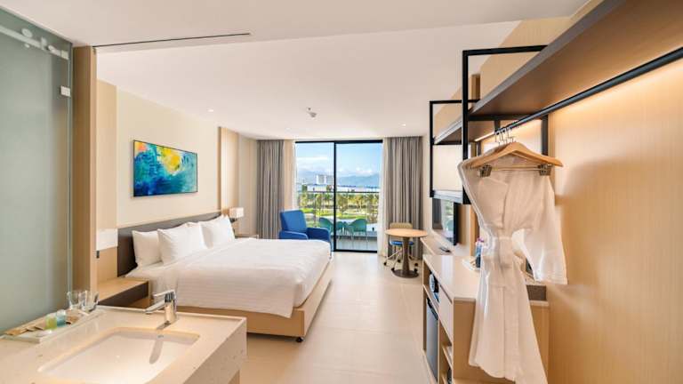 Die Zimmer in der Arena Cam Ranh Pearl Bay sind mit einem Balkon, einem Wasserkocher, einem Flachbild-TV und einem Safe ausgestattet. Jedes Zimmer bietet Bettwäsche und Handtücher sowie ein eigenes Badezimmer. Einige Zimmer verfügen über eine Veranda oder Terrasse und bieten Meerblick.