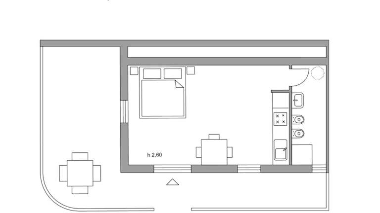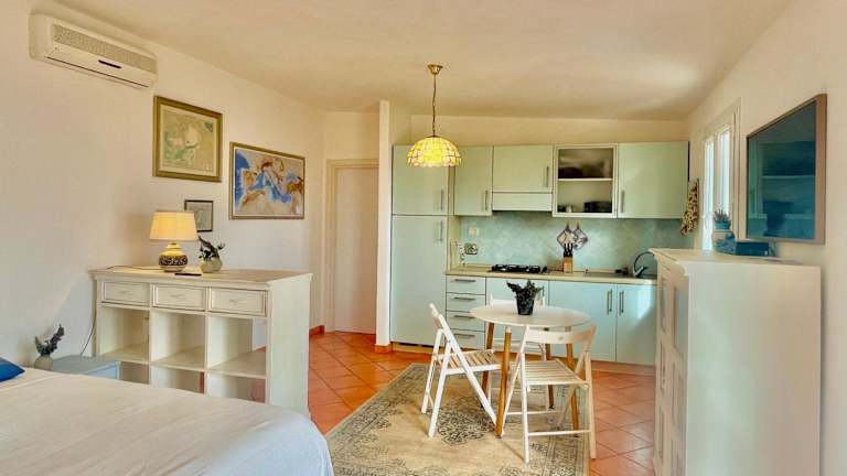 Die Zimmer sind mit einem Sitzbereich, einem Flachbild-TV und einer voll ausgestatteten Küche ausgestattet, die einen Kühlschrank und eine Herdplatte umfasst. Jedes Zimmer verfügt über ein eigenes Badezimmer mit einem Bidet und einem Haartrockner. Alle Wohneinheiten besitzen zudem eine Veranda oder einen Patio mit Meerblick.