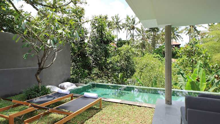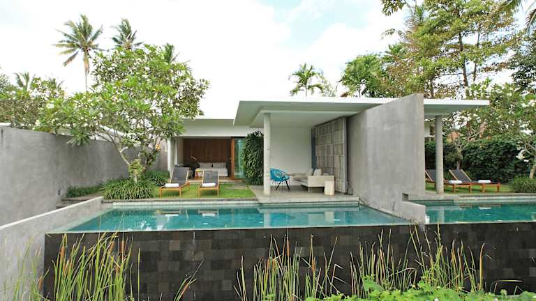 Die Aria Villas Ubud bieten eine einzigartige Unterkunft inmitten der Natur von Ubud. Die modernen Villen verfügen über einen eigenen Pool und bieten einen atemberaubenden Blick auf das Tal. Die Unterkunft besticht durch ihren exzellenten Service, darunter ein kostenloser Butlerservice. Genießen Sie die Ruhe und die tropische Atmosphäre dieses einzigartigen Hotels.