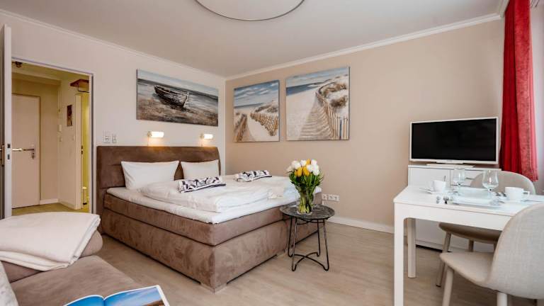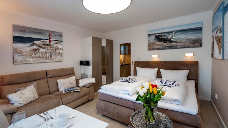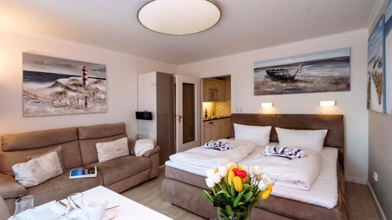 Die Unterkunft liegt in Westerland, weniger als 400 m vom Strand in Westerland entfernt. In der Umgebung befinden sich das Freizeitbad Sylter Welle, das 200 m entfernt ist, sowie der Strand in Wenningstedt (2,6 km) und das Sylt Aquarium (1,1 km). Der Bahnhof Westerland ist 2,3 km entfernt und der Flughafen Sylt liegt 2 km von der Unterkunft.