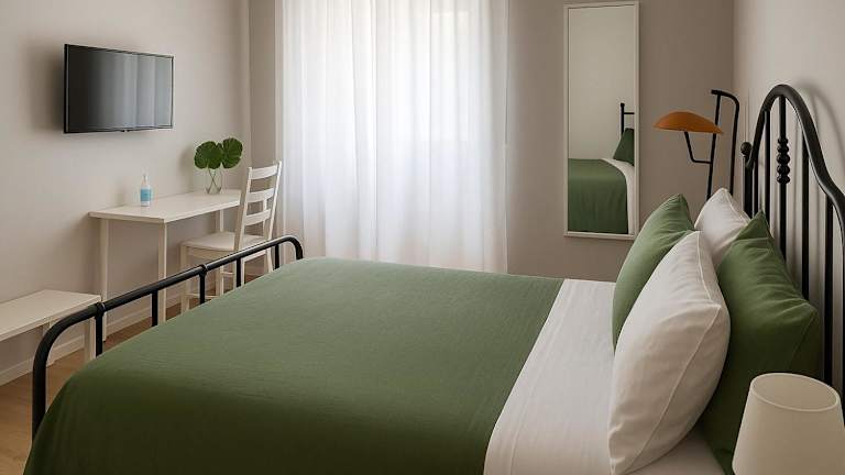 Das Apartment verfügt über zwei Schlafzimmer und ist ausgestattet mit einem Flachbild-Kabel-TV, einer voll ausgestatteten Küche mit Mikrowelle und Kühlschrank, sowie einer Waschmaschine. Ein Bad mit Bidet und die Bereitstellung von Handtüchern und Bettwäsche gehören ebenfalls zur Ausstattung. Zudem sind Rauchmelder und Feuerlöscher vorhanden.