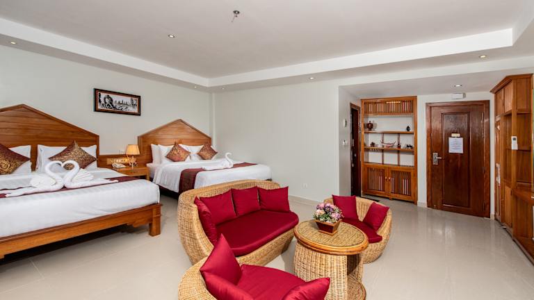 Das Aristocrat Residence & Hotel befindet sich in einer günstigen Lage, nur 20 m von den Stränden Seredipity und Ochheuteal entfernt. Auch das Einkaufszentrum Lucky Mall und das Stadtzentrum von Sihanoukville sind nur wenige Schritte entfernt. Diese ideale Lage ermöglicht es den Gästen, die Schönheit der Umgebung zu erkunden und die verschiedenen Attraktionen der Stadt zu genießen. Der internationale Flughafen Sihanoukville ist ebenfalls bequem zu erreichen und liegt nur 25 km entfernt.