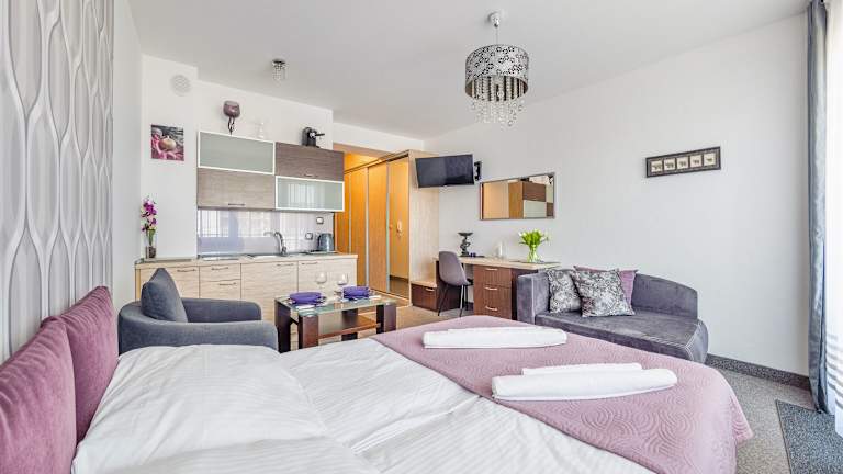 Die Apartments im Hotel Apartamenty Sun & Snow Arka Spa sind elegant eingerichtet und verfügen über Teppichboden für zusätzlichen Komfort. Jedes Apartment verfügt über ein eigenes Bad, einen Flachbild-TV und einen Balkon, auf dem Sie den Blick auf die Umgebung genießen können. Eine kleine Küchenzeile mit einem Herd, einem Wasserkocher und allen notwendigen Küchenutensilien steht Ihnen ebenfalls zur Verfügung. Kostenloses WLAN ist in allen Apartments verfügbar.