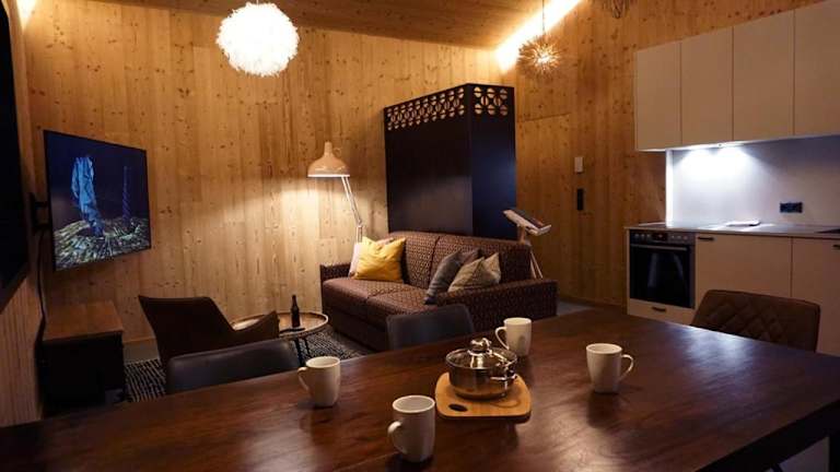 Die Apartments sind mit einem Sitzbereich, einem Satelliten Flachbild-TV sowie einer voll ausgestatteten Küche mit Kühlschrank, Geschirrspüler, Ofen, Herdplatte, Toaster, Kaffeemaschine und Wasserkocher ausgestattet. Es gibt ein eigenes Badezimmer mit Dusche und kostenlosen Pflegeprodukten.