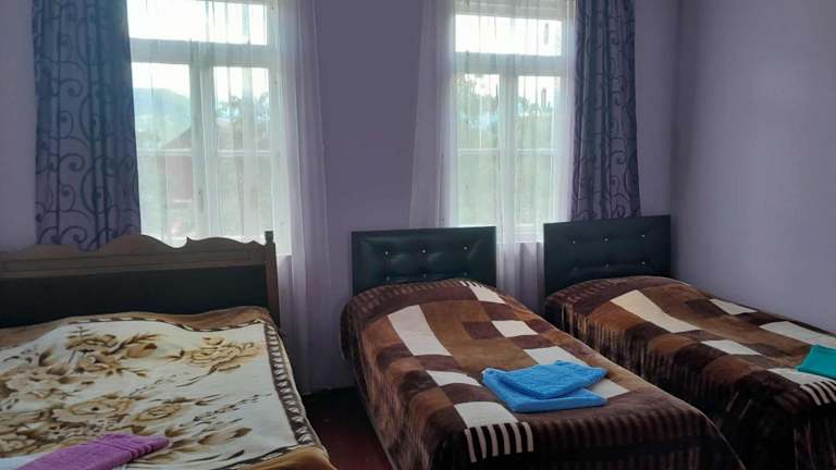 Das Hotel Armazi in Khulo bietet seinen Gästen kostenfreies WLAN, einen schönen Garten und kostenfreie Fahrräder. Die Unterkunft zeichnet sich durch eine freundliche Atmosphäre und eine 24-Stunden-Rezeption aus. Die Zimmer sind gemütlich eingerichtet und bieten entweder einen Blick auf die Stadt oder die Berge. Einige Zimmer verfügen über eine Terrasse und eine Kaffeemaschine. Jeden Morgen wird ein kontinentales Frühstück serviert und in der Gemeinschaftsküche können Sie Ihre eigenen Mahlzeiten zubereiten. Das Hotel bietet außerdem die Möglichkeit, ein Auto zu mieten, um die Umgebung zu erkunden. Skifahren gehört zu den beliebten Aktivitäten in der Region. Der internationale Flughafen Batumi ist etwa 81 km entfernt.