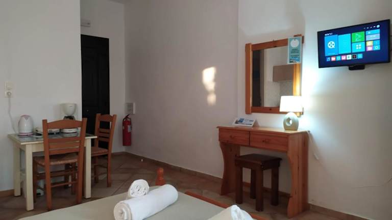 In den Armenistis View Studios haben Sie die Möglichkeit, Ihre Mahlzeiten selbst zuzubereiten, da alle Unterkünfte über eine gut ausgestattete Küchenzeile verfügen. Alternativ können Sie auch den Ortskern von Armenistis besuchen, der nur einen kurzen Spaziergang entfernt ist und eine Auswahl an Tavernen, Minimärkten und Cafés bietet. Hier können Sie lokale Spezialitäten probieren und sich verwöhnen lassen.
