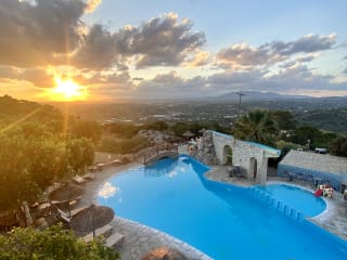 AROLITHOS ist der einzige traditionelle Weiler Kretas. Er liegt an der alten Nationalstrasse von Heraklion nach Rethimnon, nur 11 km von Heraklion entfernt. Das kleine Dorf ist auf einen Berghang mitten in einer wilden kretischen Landschaft gebaut und präsentiert sich wie ein Schmuckstück auf der Landkarte Kretas, eine Erinnerung für die ältere Generation an die kretische Lebensweise und gleichzeitig eine plastische Darstellung der Einfachheit und Schönheit der Vergangenheit für die junge Bevölkerung. AROLITHOS ist ein Familienbetrieb. Der Weiler wurde mit viel Leidenschaft und Liebe für die kretischen Bräuche errichtet. Ziel seiner Gründer war es, die kretische Tradition, die Sitten und Gebräuche des Landes, die Architektur und die Werte der kretischen Bevölkerung anhand eines Projektes, das für die kommenden Jahrhunderte lebendig bleiben soll, zu zeigen. In Arolithos sind die Hotelzimmer wie kleine "Nachbarschaften" über das Gelände zerstreut. Jedes von ihnen ist im traditionellen Stil eingerichtet und verfügt über Bad / WC, Kühlschrank, Fernseher und Klimaanlage. Die meisten Räume haben Balkon oder Terasse, mit Blick auf den Garten oder mit Aussicht auf die umliegenden Berge. Die Zimmer für die Winterperiode sind mit einem Kamin ausgestattet, der auf Anfrage verwendet werden kann. ANMERKUNG: Das Hotel wurde auf einem Hügel, in der Form eines kretischen Dorfes gebaut. Es ist kein echtes Dorf mit Bewohnern, sondern eine Nachbildung. Die Hotelzimmer sind nicht in einem Hauptgebäude untergebracht, sondern im kompletten Dorf verstreut, wie eine Nachbarschaft mit kleinen Gassen. Teile des Dorfes - Ausstattung: Café-Bar. TV Raum Frühstücksraum Kafenion Restaurant Souvenir-Geschäfte (Silber, gewebte Textilien, Keramik) Werkstätten für traditionelle Kunst und Kunsthandwerk (Schmiede, Keramik, Weberei-Kunst) Traditionelle Häuser Museum für ländliche Geschichte und volkstümliche Kunst Kirche Traditionelle Bäckerei