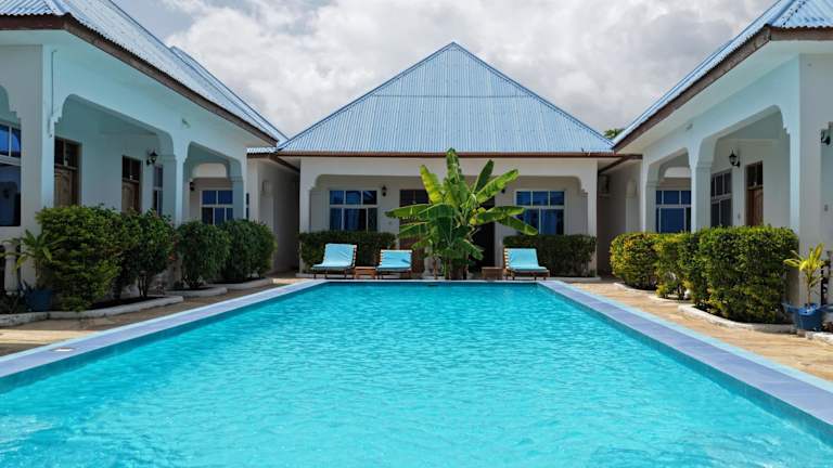 Das AROYA Boutique Hotel befindet sich in Jambiani, nur 500 Meter vom Strand entfernt. Der Flughafen Sansibar ist etwa 57,5 km entfernt, während das Stadtzentrum ebenfalls 500 Meter weit entfernt liegt. Der nächstgelegene Bahnhof befindet sich 5 Meter von der Unterkunft entfernt.