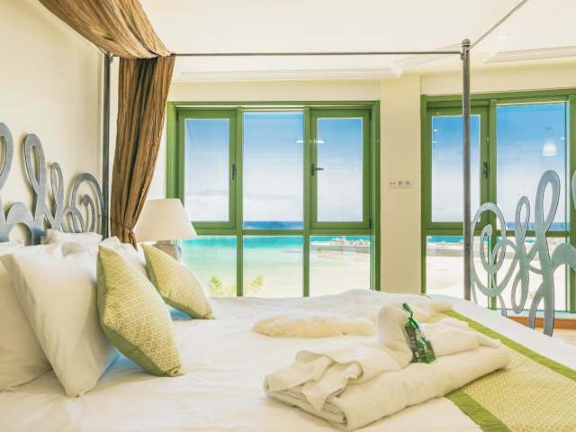 Das Arrecife Sands bietet geräumige Apartments mit moderner Ausstattung und stilvollem Design. Das Wohnzimmer ist mit Parkettboden, einem bequemen Sofa und einem Essbereich ausgestattet. Die technische Ausstattung umfasst einen Flachbild-TV, einen DVD-Player und eine iPod-Dockingstation, so dass Sie Ihre Lieblingsfilme und Musik genießen können. Die Küche ist komplett ausgestattet mit einem Backofen, einem Geschirrspüler und einer Mikrowelle, so dass Sie Ihre eigenen Mahlzeiten zubereiten können. Das Apartment verfügt über ein Doppelzimmer mit einem Himmelbett und Meerblick sowie zwei weitere Zweibettzimmer. Ein eigenes Bad und ein begehbarer Duschraum stehen Ihnen ebenfalls zur Verfügung. Handtücher und Bettwäsche werden gestellt, so dass Sie sich um nichts kümmern müssen.