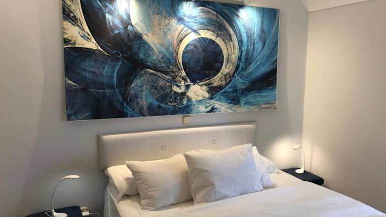 Die Ferienwohnung umfasst zwei Schlafzimmer, ein Wohnzimmer sowie eine voll ausgestattete Küche, die mit einem Kühlschrank und einer Kaffeemaschine ausgestattet ist. Des Weiteren gibt es ein Badezimmer mit Bidet und Dusche. Zur Ausstattung gehören Handtücher und Bettwäsche, die gemäß den Richtlinien der örtlichen Behörden gewaschen werden.