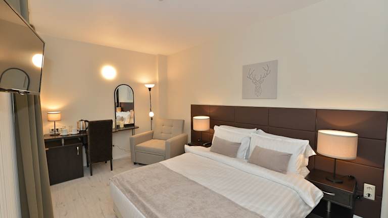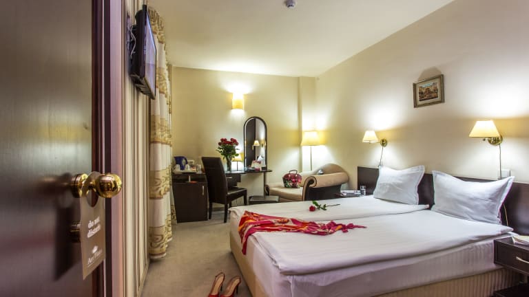 Das Art Plaza Hotel befindet sich in Sofia, nur ca. 1 km vom Stadtzentrum entfernt. Der Flughafen Sofia ist etwa 7 km entfernt. Die Fußgängerzone Vitosha mit ihren zahlreichen Cafés und Geschäften erreichen Sie in nur 1 Gehminute. Die Lage des Hotels ist ideal für Erkundungstouren durch die Stadt und bietet eine gute Anbindung an öffentliche Verkehrsmittel.