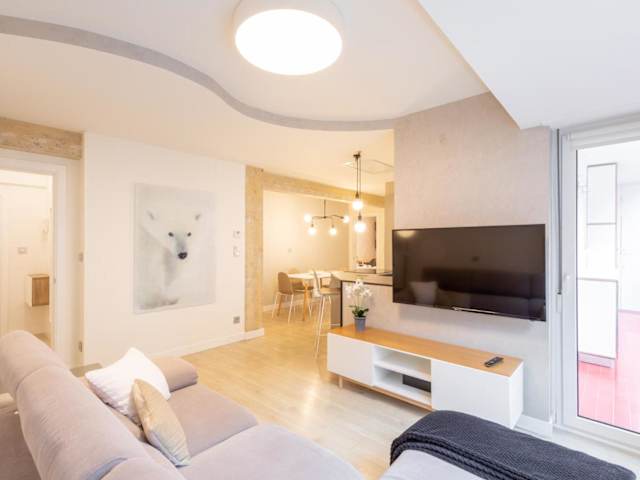 Das Apartment im Artabide - Baskeyrentals verfügt über 2 Schlafzimmer, 1 Badezimmer, einen gemütlichen Essbereich und eine voll ausgestattete Küche. Die Einrichtung ist modern und komfortabel und bietet Ihnen alles, was Sie für einen angenehmen Aufenthalt benötigen. Genießen Sie den Balkon mit Blick auf die Stadt und entspannen Sie sich nach einem Tag am Strand. Bettwäsche und Handtücher werden gestellt und ein Flachbild-TV ist ebenfalls vorhanden.